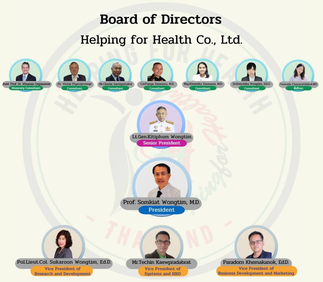 Founded by a team of health experts who share the same vision, aiming for everyone to enjoy good health—both physical and mental—and to be able to adapt and live happily in society. We provide high-quality, standardized, and affordable health products for the public, while also supporting them in distributing our products as a means to create careers, increase income, and build life stability. In addition, we offer free consultations on physical health, dental health, and mental health by our healthcare team, both in person and online. We also export health products abroad to support producers, farmers, and the nation in achieving sustainable security.